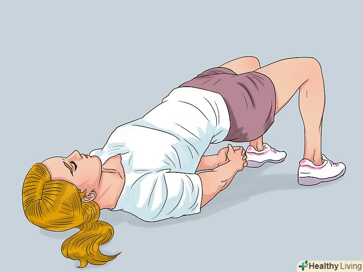 Зміцніть сідниці. сідниці-це м'язи на вашій попі. Ляжте на спину, ступні притиснуті до підлоги. (ваші ноги будуть виглядати як перевернута V). Витягніть руки вниз, паралельно до тіла. Підніміть стегна, стискаючи сідниці. Сплетіть руки разом під стегнами. Тримайте 2 хвилини.