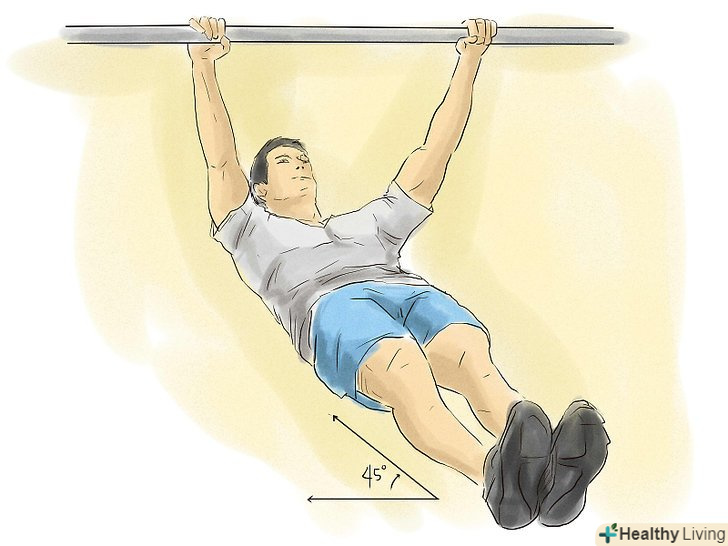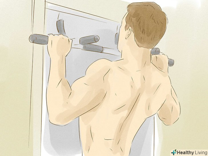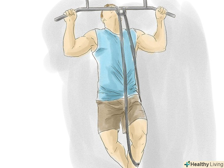 Прийшов час піднімати вагу власного тіла. підтягування свого тіла під кутом є прекрасним способом підготуватися до справжніх підтягувань на перекладині, так як дана вправа задіє все ті ж самі м'язи, необхідні вам для підняття підборіддя вище поперечини. Скористайтеся Сміт-машиною. Ви також можете налаштувати її відповідно до своїх уподобань. Новачкам радиться починати з розташування поперечини високо, що знизить кут, а відповідно і навантаження при підтягуванні. Згодом опускайте поперечину все нижче і нижче, щоб ставати ще сильніше.- Напружте м'язи сідниць і черевного преса, Зберігайте тіло в випрямленому положенні. Зосередьтеся на підтягуванні руками.