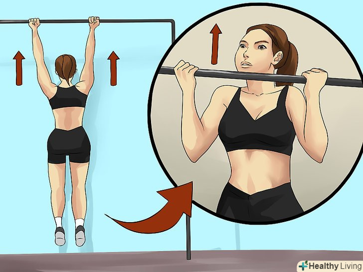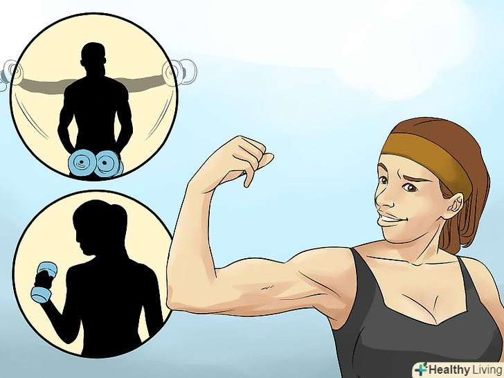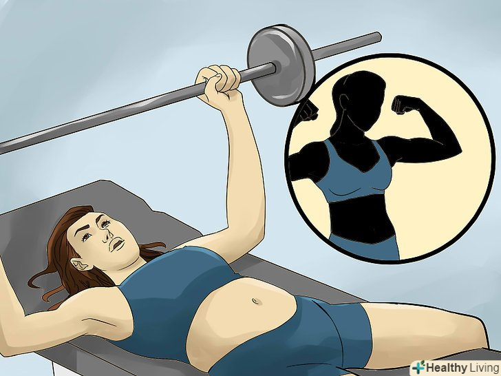 Зміцніть м'язи рук і плечей. багато жінок хочуть мати стрункі і м'язисті руки і плечі. Для цього слід тренувати дельтовидні (передню, бічну і задню) і надостние м'язи в плечі, а також плечовий м'яз, трицепс і біцепс, тобто згиначі та розгиначі рук.- Щоб наростити м'язи плечей, робіть жим лежачи або над головою, підйом перед собою, тягу до підборіддя або розведення рук. Ці вправи можна легко виконувати за допомогою еспандерів, штанг або гантелей для додаткової ваги. [28]
