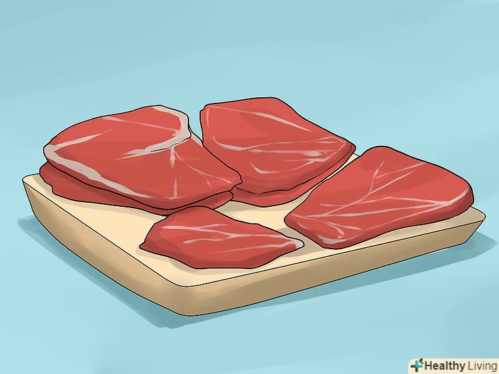 Їжте нежирне м'ясо. високоякісне багате білком нежирне м'ясо необхідно для набору м'язової маси. У травній системі воно розщеплюється на амінокислоти, які є будівельним матеріалом для м'язової тканини і потрібні для відновлення м'язів після тренувань. [33]- Їжте нежирну яловичину (наприклад, філей зовнішньої частини стегна, філе верхньої і задньої частини стегна) або яловичий фарш з вмістом жиру менше 7%. Нежирна яловичина користується популярністю у багатьох культуристів завдяки тому, що містить велику кількість поживних речовин (цинку, заліза і вітамінів групи B) і високоякісного білка. [34]