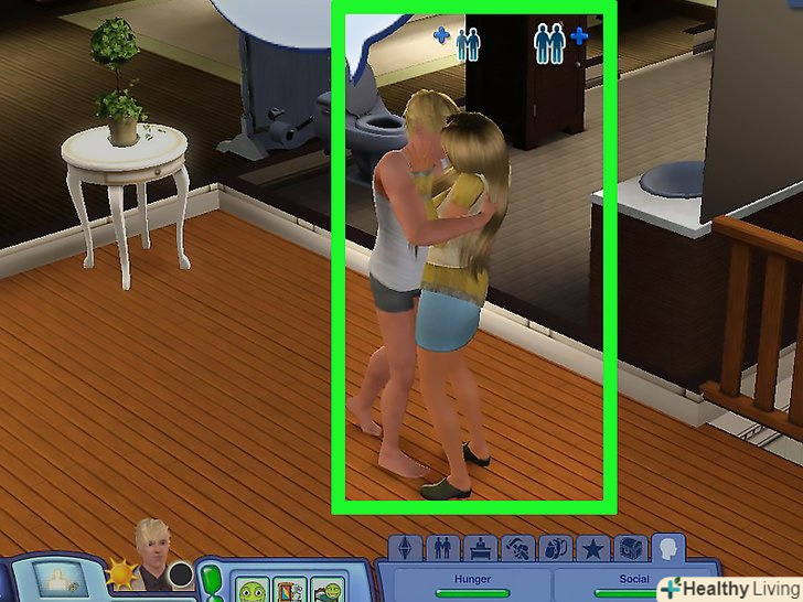 Розвивайте відносини між чоловічим і жіночим персонажами.жіночий персонаж повинен перебувати в молодому або дорослому віці. При цьому чоловічий персонаж може бути молодим, дорослим або літнім. Між персонажами необхідно розвинути романтичні відносини практично до повного заповнення індикатора відносин.- Також можуть заводити дітей і деякі сіми, які не є людьми. При цьому діти зазвичай успадковують риси від обох батьків. Однак зомбі, симботи, серво і мумії не можуть мати дітей.[1]