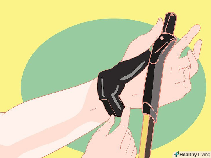 Візьміть в ліву руку палицю для лівої руки і протягніть її в ремінець. міцно правою рукою закріпіть ремінець. Тепер протягніть праву руку в ремінець на палиці для правої руки і теж закріпіть надійно ремінець.