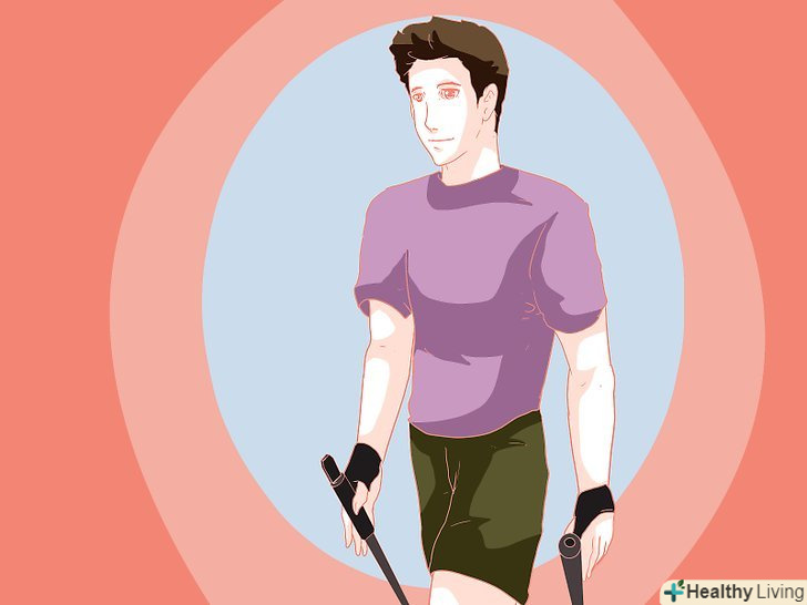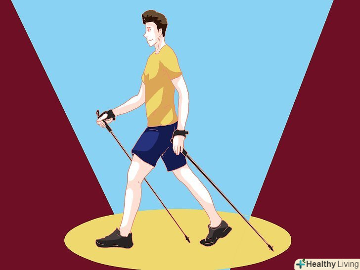 Ідіть зазвичай, спочатку не користуючись палицями при ходьбі. нехай просто бовтаються на руках, поки ви йдете. Так ви зможете краще відчути, як це працює.
