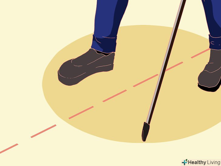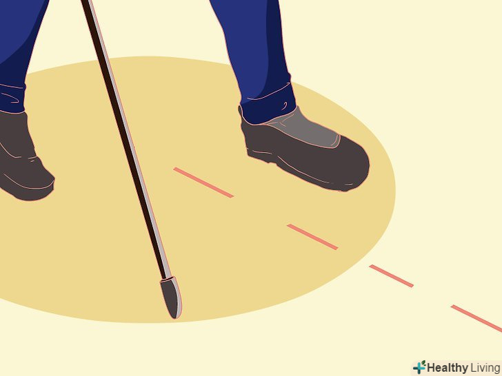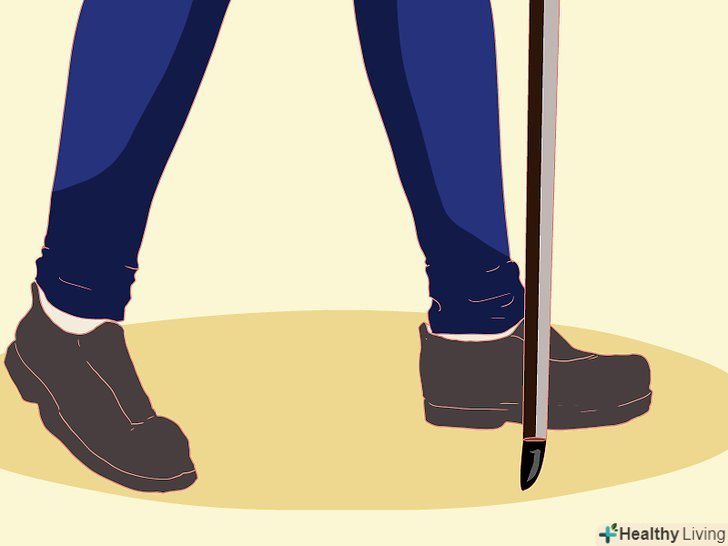 Поставте праву палицю під час кроку. ще раз, палиця з ногою повинні стосуватися землі одночасно на новій уявній лінії, проведеної на Землі, перпендикулярно до грудей.