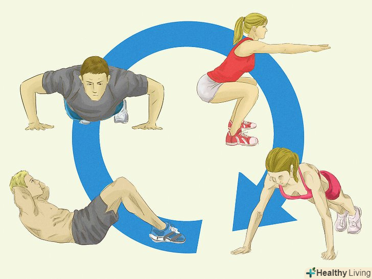 Майте на увазі, що Збройні сили і спецпідрозділи роками використовують силові вправи для тренувань і отримують прекрасні результати. у ваші заняття слід включити наступні силові вправи:Верхня частина тіла( руки, плечі, груди) підтягування вправи " супермен» віджимання в різних варіаціях підтягування на висячих м'ячах підтягування зворотним хватом Нижня частина тіла (ікри, ноги, сідниці) підняття гомілок присідання в різних варіаціях підняття ніг (положення лежачи, упор на лопатки, сідниці відірвані від підлоги, ноги зігнуті в колінах (все тіло в одну лінію), піднімаєте вгору ноги одну за одною) присідання спиною до стіни підняття сідниць (положення лежачи на спині, ноги зігнуті в колінах; повільно піднімаєте сідниці так, щоб упор був на лопатках, і тіло утворило одну лінію) Прес Кранчі Зворотні крани