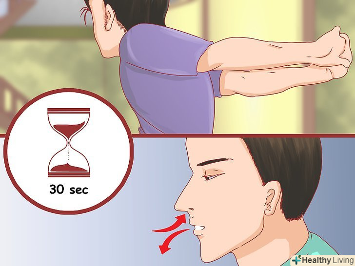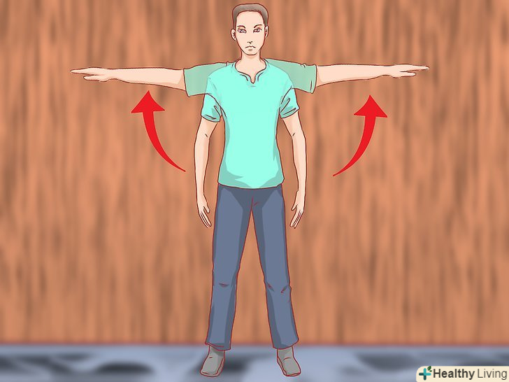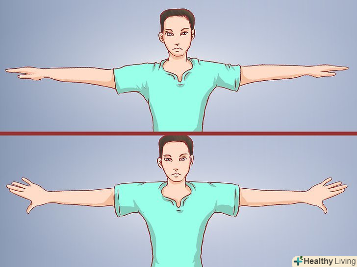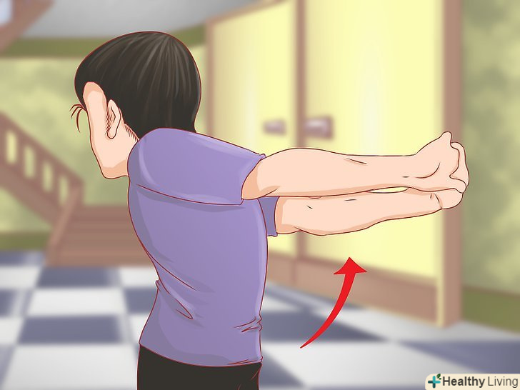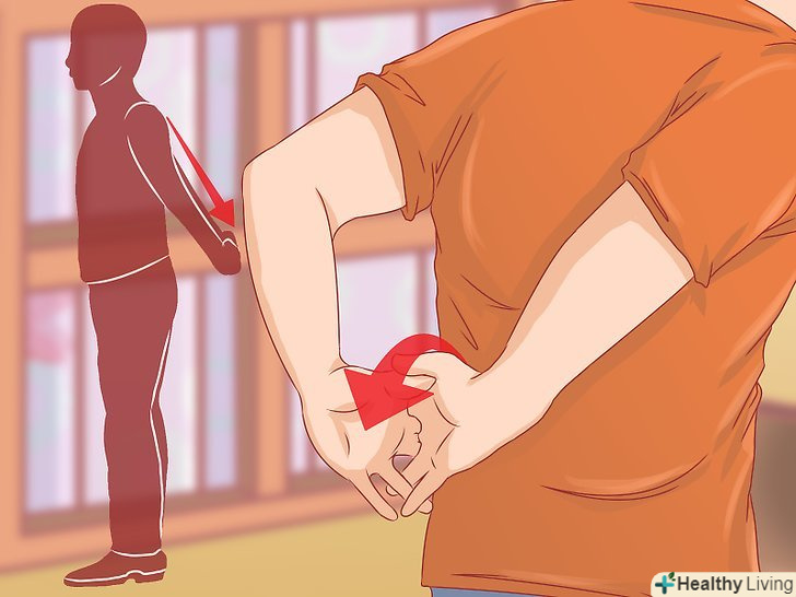 Повільно поверніть кисті рук долонями назад. ви відразу відчуєте, як натягуються м'язи біцепса.- Якщо ви не відчуєте розтягування, почніть повільно заводити руки назад.