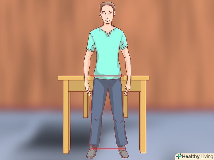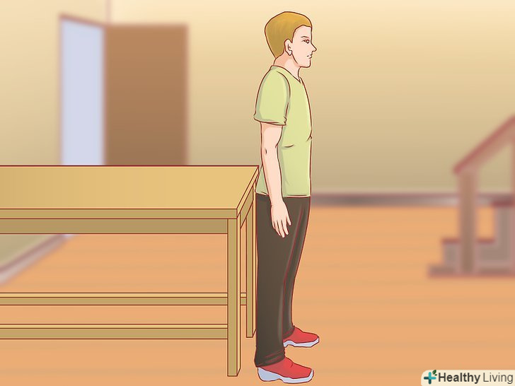 Встаньте прямо, ноги на ширині плечей. якщо хочете, встаньте спиною до стіни або жердини, щоб посилити розтягнення.