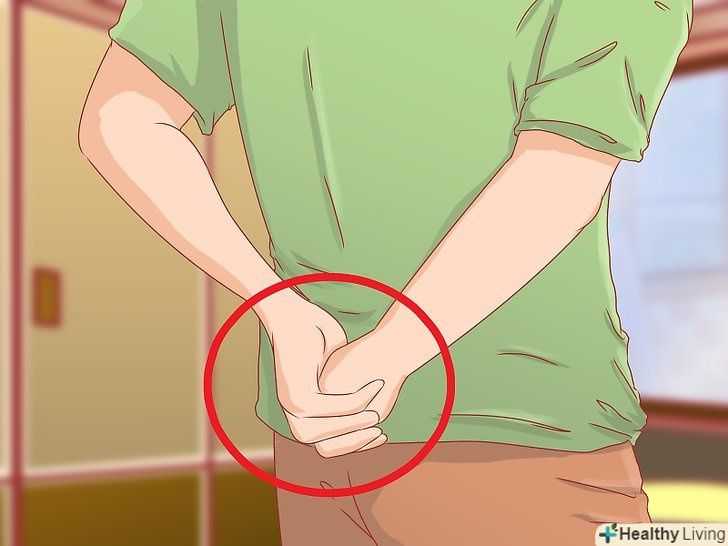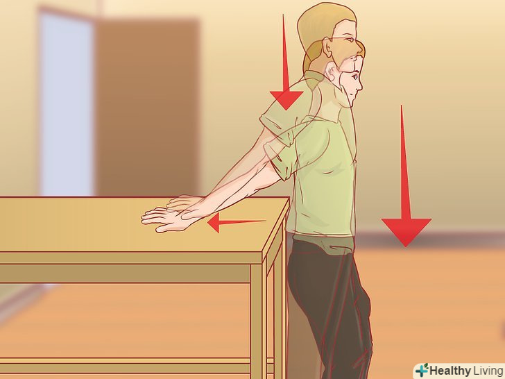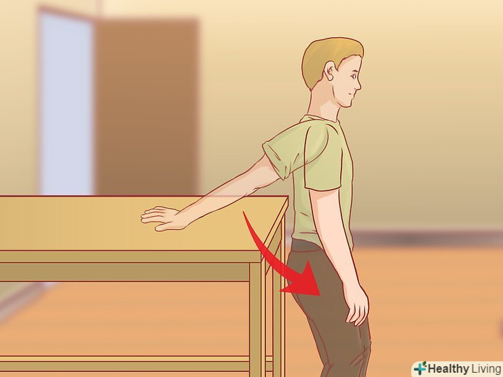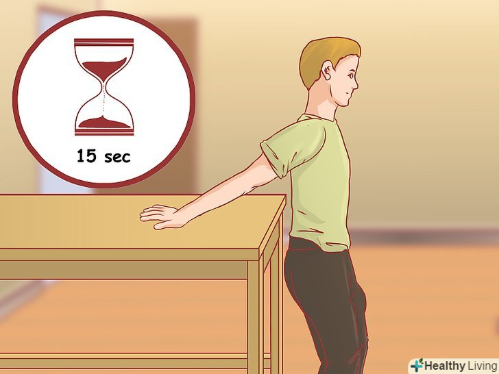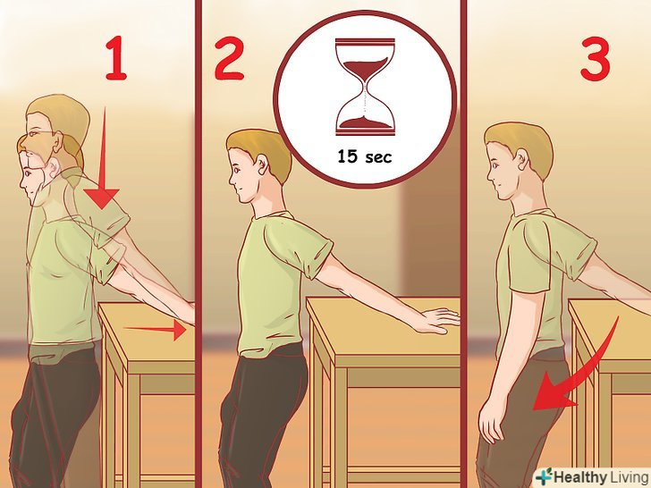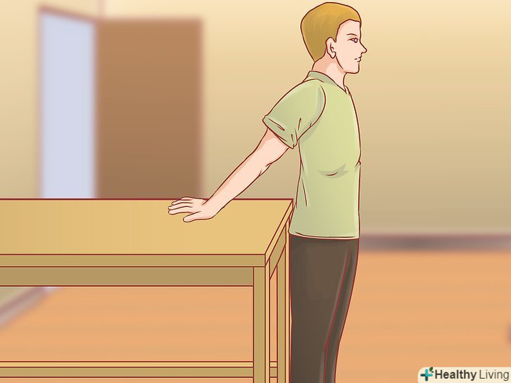 Заведіть одну руку за спину і почніть її опускати, поки зап'ястя не опиниться на лавці або столі. долоня повинна бути спрямована вгору.