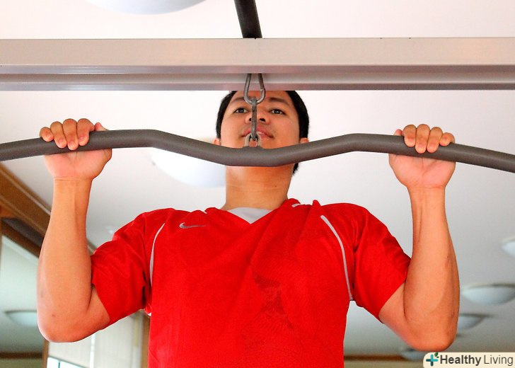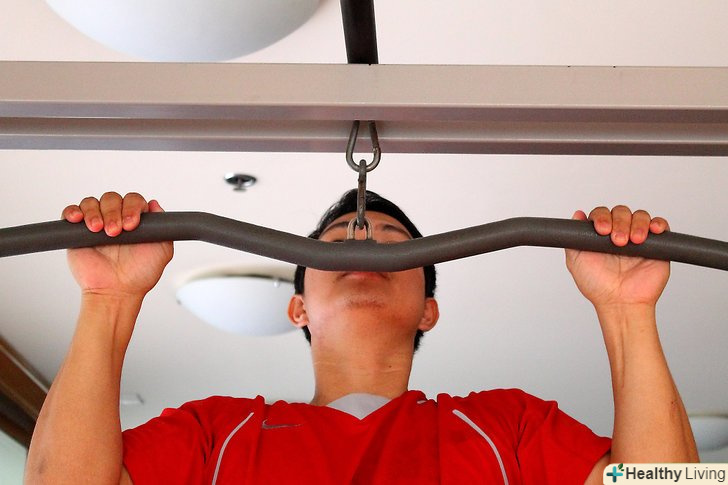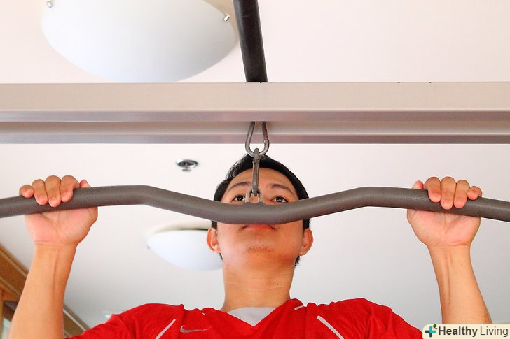 Підтягніться і затримайте підборіддя вище поперечини 30 секунд або рівно стільки, скільки можете. Станьте на стілець і заберіться в це положення, якщо вам не під силу підтягнутися. Коли ви повністю вичерпаєте свої м'язові ресурси, повільно і усвідомлено опустіться вниз, що допоможе вам навчитися координувати роботу своїх м'язів.