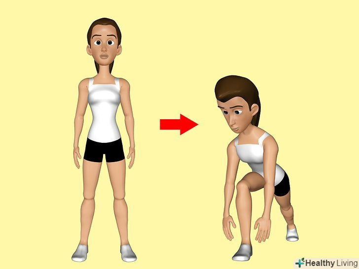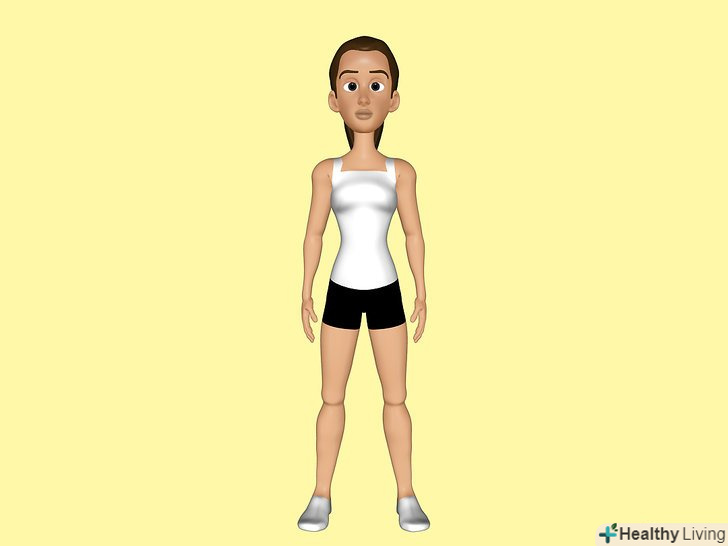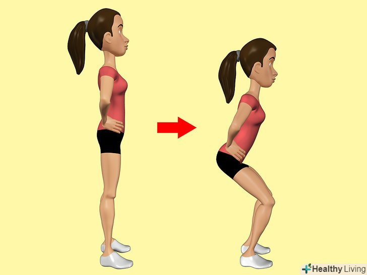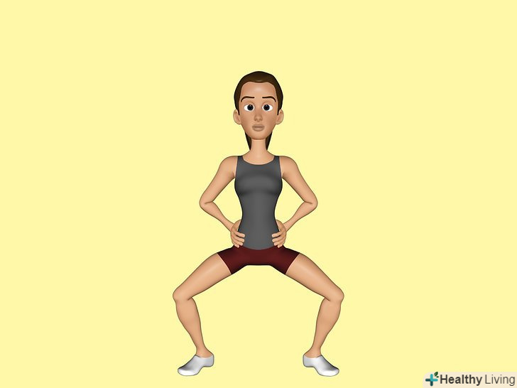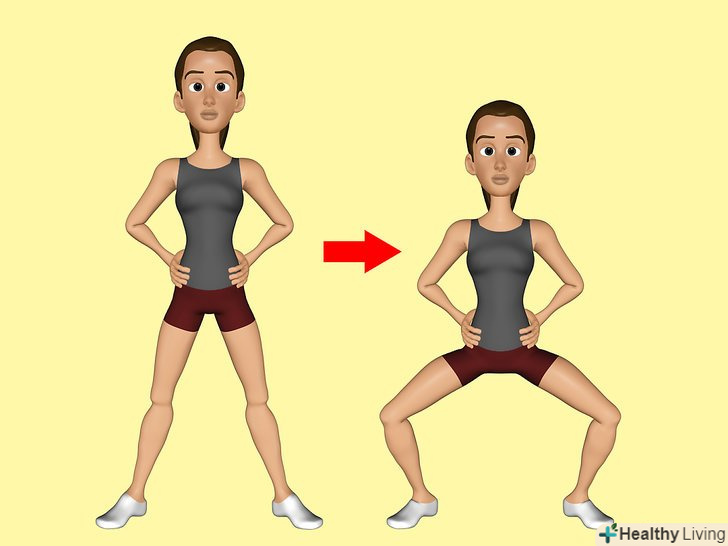Встаньте, ноги трохи ширше плечей, пальці ніг дивляться в сторону. ви можете витягнути руки перед собою або покласти на стегна в той час, як ваш торс залишається в прямому і вертикальному положенні протягом усього вправи.