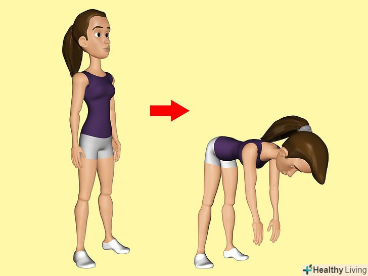 Нахиліться вперед стегнами, поки спина не буде паралельна підлозі. ваші руки можуть бути на гомілках або витягнуті до підлоги.