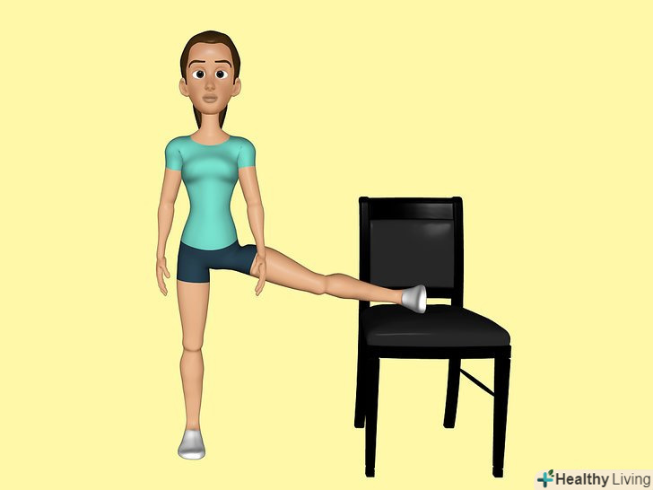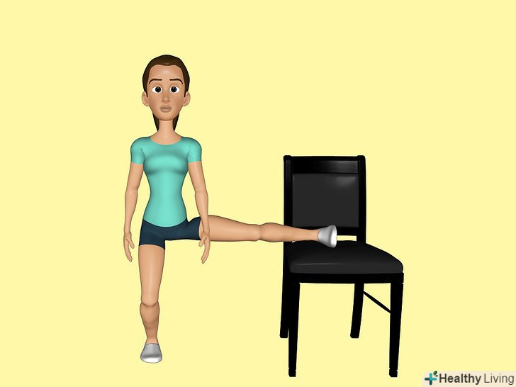 Покладіть праву ногу на стілець, а потім прийміть наступне положення: ви дивитеся вперед, а стілець знаходиться на 90 градусів праворуч.