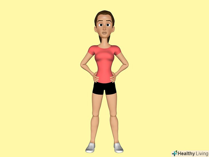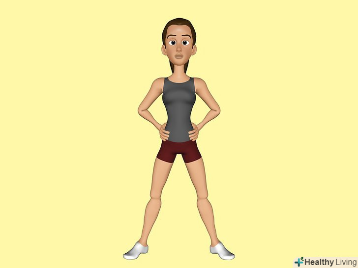 Встаньте прямо, ноги на ширині плечей, руки на стегнах.