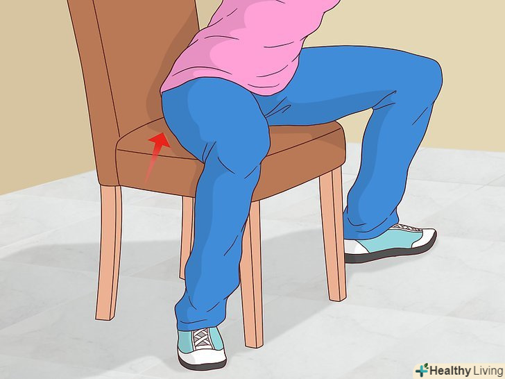 Напружуйте сідничні м'язи. найпростіший спосіб змусити працювати сідничні м'язи, поки ви сидите, — це періодично напружувати їх. При напрузі сідничних м'язів вони краще відчуваються тілом, а стегна злегка повертаються. Щоб така вправа мала дієвий ефект, його слід повторювати досить багато разів. [1]- Затримайтеся в напруженій позі на 30 секунд, а потім розслабте м'язи. [2]