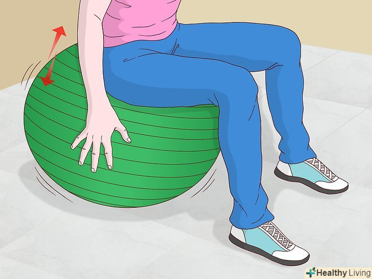 Замініть стілець на фітбол. періодично застосовуйте спеціальний гімнастичний м'яч, або фітбол, в якості стільця, щоб прокачати сідничні м'язи, м'язи торсу і м'язи ніг, не відриваючись від роботи. Щоб просто сидіти на фітболі, необхідно постійно активувати різні групи м'язів, тим самим зберігаючи рівновагу і правильну поставу. [5]- Можливо, ви не захочете остаточно замінити стілець фітболом. В такому випадку просто періодично використовуйте фітбол в якості стільця, щоб не давати занадто велике навантаження на нижню частину спини.