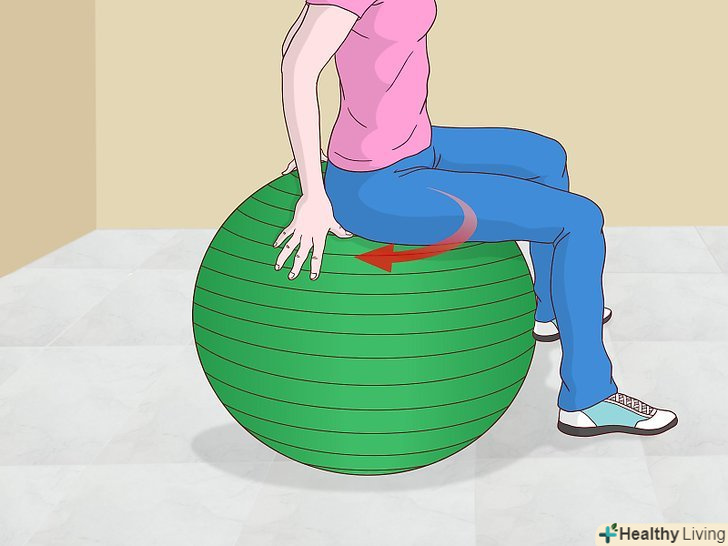 Періодично міняйте точку опори на м'ячі. замість того щоб ставитися до фітболу як до звичайного стільця, скористайтеся тими перевагами, які він вам може дати, періодично змінюючи свою точку опори на ньому протягом дня. Тримайте ноги на одному місці, але зсув на м'ячі вліво, вправо, вперед і назад, працюючи м'язами ніг і сідниць, щоб утримати рівновагу. [6]- Затримуйтеся на деякий час в тих позах, які дають вам відчутне навантаження на сідниці.