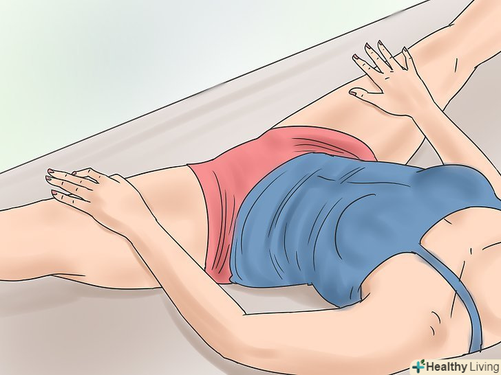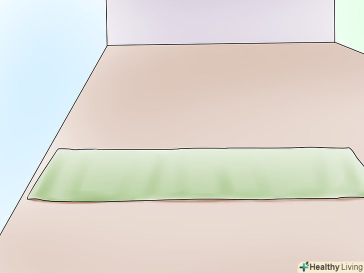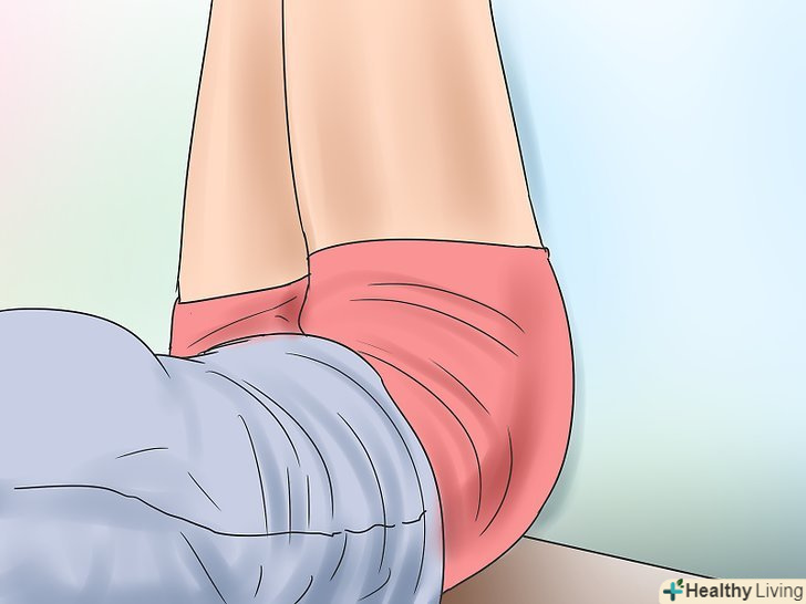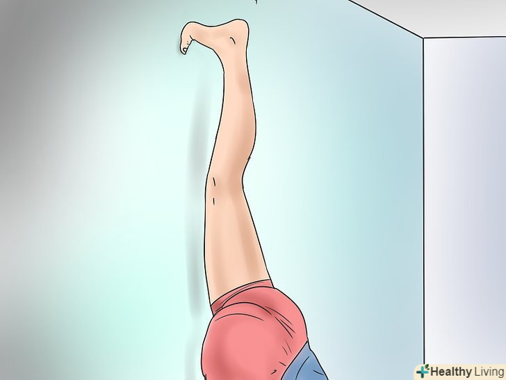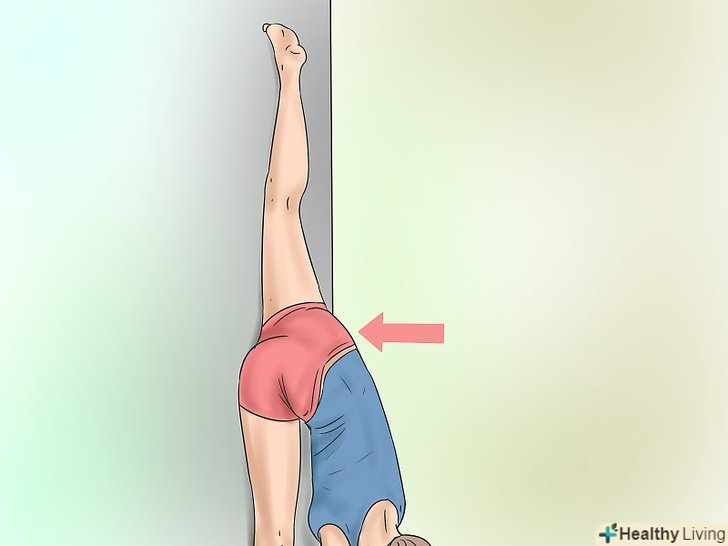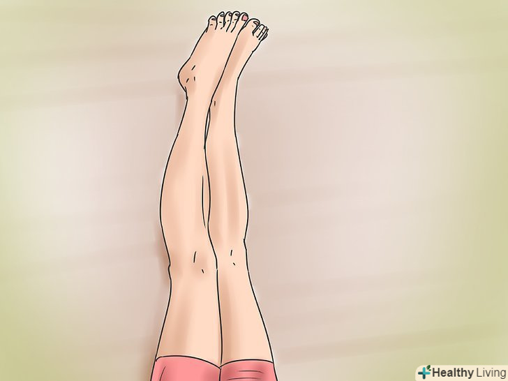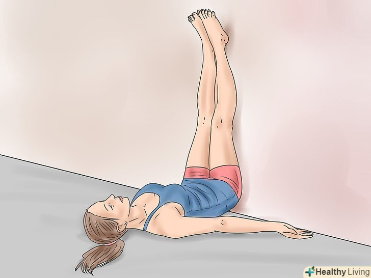 Ляжте спиною на підлозі біля стіни. зігніть ноги в колінах і розмістіть їх на стіні. Допомагайте собі руками, щоб посунутися якомога ближче до стіни.