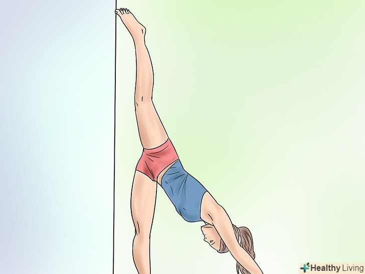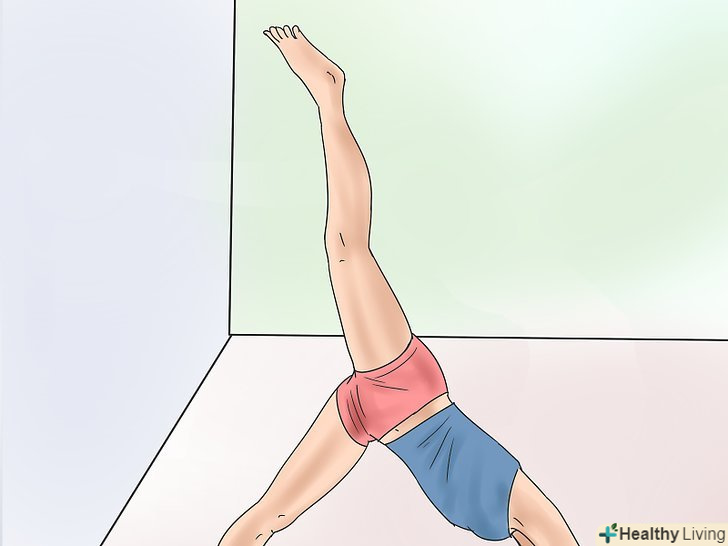 Торкніться сідницями стіни. випряміть ноги вгору, зберігаючи стопи і коліна разом. Вам доведеться розсовувати ноги нарізно, що чудово підготує ваші м'язи до шпагату на стіні.