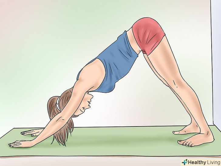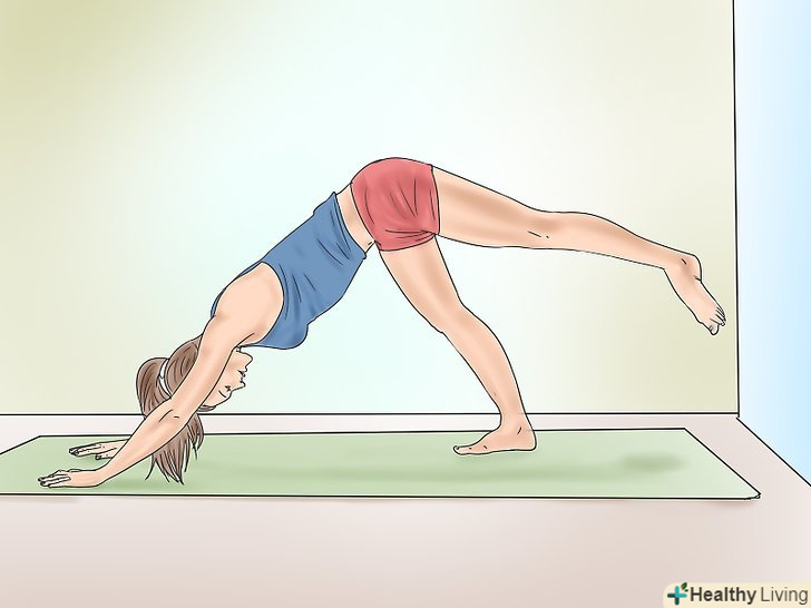 Прийміть позу собаки, розташувавши ноги біля стіни, залишивши достатньо місця для підняття однієї з ніг вгору.