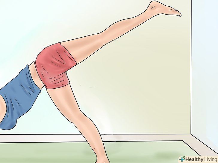 Підніміть вашу праву ногу і зіпріться нею об стіну. Нога буде повністю паралельна підлозі.