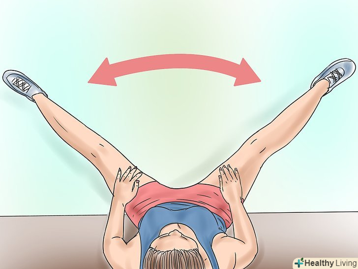 Злегка тисніть руками на ноги. поступово розкривайте ноги ширше і ширше, розтягуючи м'язи.