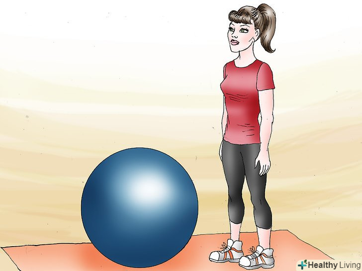 Встаньте прямо навпроти м'яча. тримайте прямо вашу спину і ноги. Розставте ноги на ширину плечей.