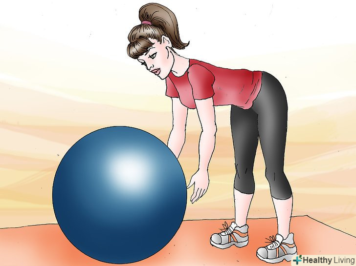 Нахиліться вперед. повторіть вправу ще раз, опускаючи м'яч на підлогу. Пам'ятайте, що вам необхідно утримувати ваші ноги і руки в прямому положенні.