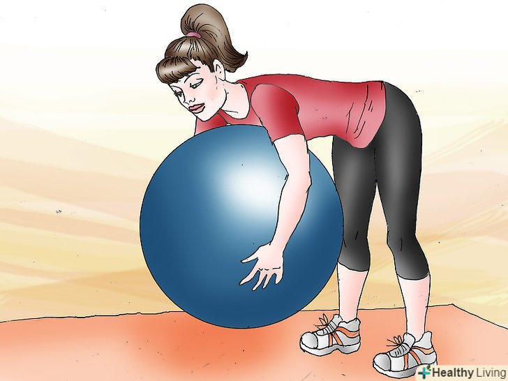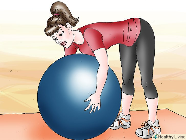 Нахиліться вперед. утримуючи ноги прямими, зігніться в талії і нахиліться вперед у напрямку до м'яча. Зупиніться, коли ваш тулуб буде паралельно підлозі.