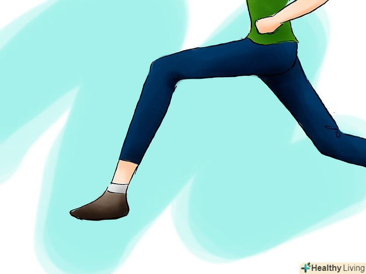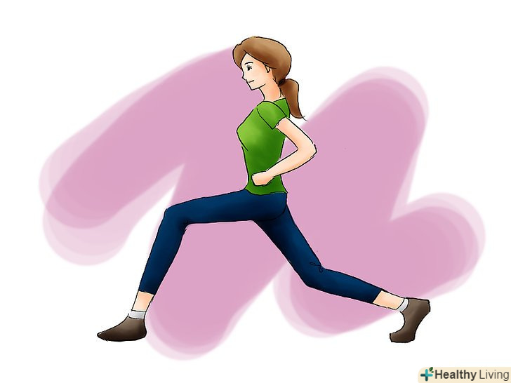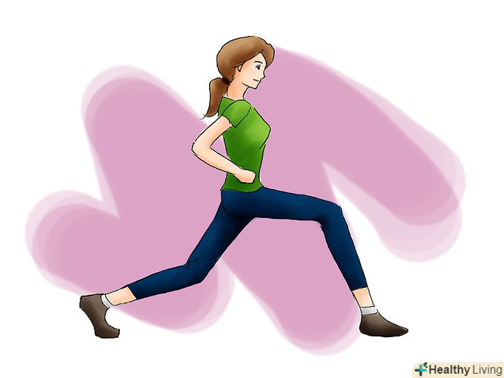 Поставте одну ногу попереду іншої. трохи присядьте і зробіть великий повільний крок вперед.