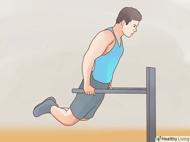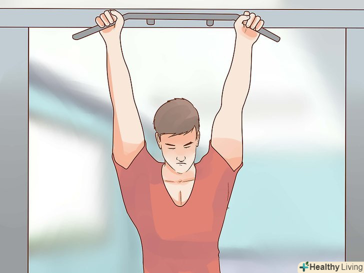 Виконуйте підтягування. підтягування зміцнюють груди, а також руки, плечі, спину і черевний прес.