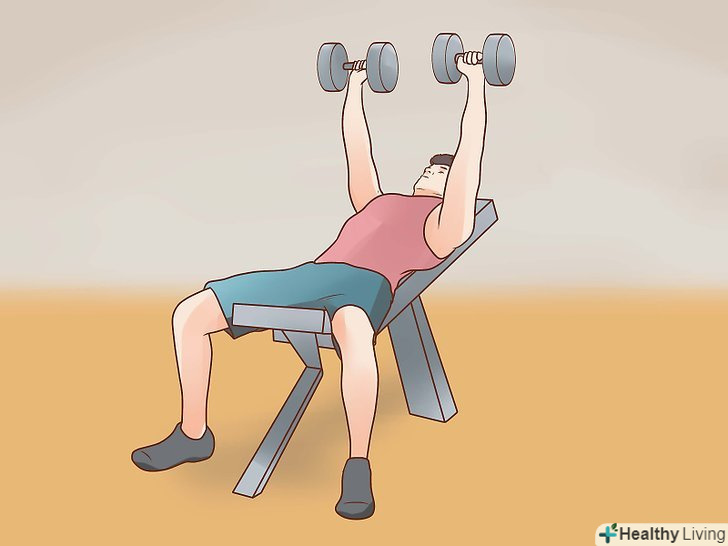 Жим гантелей лежачи на похилій дошці. Коли ви звикнете до жиму лежачи зі штангою, можна вдатися до використання гантелей і виконувати жим з ними, лежачи на похилій дошці, щоб опрацювати м'язи грудей під іншим кутом.