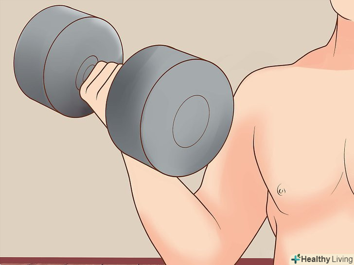 Виконуйте підйом гантелей на біцепс. незважаючи на те, що ця вправа традиційно розглядається як вправа для рук, воно допомагає в опрацюванні грудних м'язів і робить їх більш вираженими. Можна також виконувати цю вправу зі штангою.