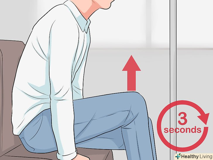 Робіть скручування. втягніть тазові м'язи і задійте Нижні м'язи живота. Потім задійте верхні м'язи живота і рухайте грудною кліткою, злегка похитуючи стегнами.- Затримайтеся на 10 секунд і відпочивайте 3 секунди, але тримайте дихання всю вправу. Повторюйте від 8 до 12 разів, поки не втомляться м'язи. Водії машин можуть робити це, коли зупиняються в пробці або стоять на світлофорі, пасажири електрички, автобуса або літака можуть робити це, коли їм зручно.