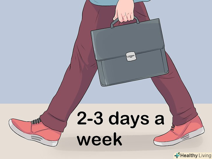 Ходіть пішки на роботу 2-3 дні на тиждень. вивчіть шлях на роботу, якщо він зручний, експериментуйте з пішими походами на роботу в черевиках з хорошими устілками-супінаторами. Для вас це може бути хорошим зняттям стресу після роботи, у вас буде час подихати свіжим повітрям і розім'ятися після важкого дня.- Переконайтеся, що на вашому шляху є парки та пішохідні доріжки, щоб ходити по них. Ніколи не ходіть по трасі, газонах або небезпечних дорогах.