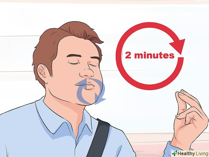 Виконуйте глибокі дихальні вправи 2 хвилини. вдихайте настільки глибоко, щоб ваша грудна клітка і діафрагма збільшувалися. Видихайте повільно все повітря з легенів. Повторюйте це 2 хвилини, протягом 1 пісні по радіо.- Мета цієї вправи – зниження стресу. Важливо посилити дихання і припинити до того, як ви розслабитеся занадто сильно. Глибоке дихання протягом тривалого часу може привести до глибокого розслаблення і сонливості.