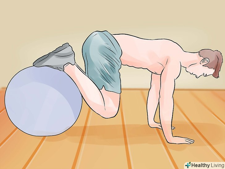 Робіть вправу обертання навколо осі на гімнастичному кулі. у цій вправі вам потрібно поставити гомілки на гімнастичний м'яч і, перебираючи руками по колу, рухатися навколо нього. Ця вправа не тільки задіє м'язи верхнього пояса, але також допомагає зміцнити м'язи Преса.