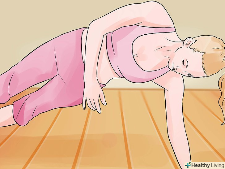 Робіть вправу з пілатесу на бічні прогини. ляжте на бік так, щоб тіло було перпендикулярно підлозі. Повільно відштовхніться і рукою підтримуйте витягнуте в струнку тіло так довго, як тільки зможете. Зробіть так на кожну сторону. Крім того, що ви накачаєте м'язи рук і плечей, Ви також зміцните м'язи спини і преса.