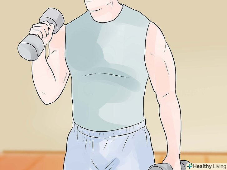 Робіть вправу прес Арнольда. Сядьте на лавку з двома гантелями. Чи не притискаючи лікті до торсу або стегон, зігніть руки в ліктях підніміть гантелі вище рівня плечей. Повільно послабте тиск і опустіть гантелі вниз так, щоб вони були паралельні колін.