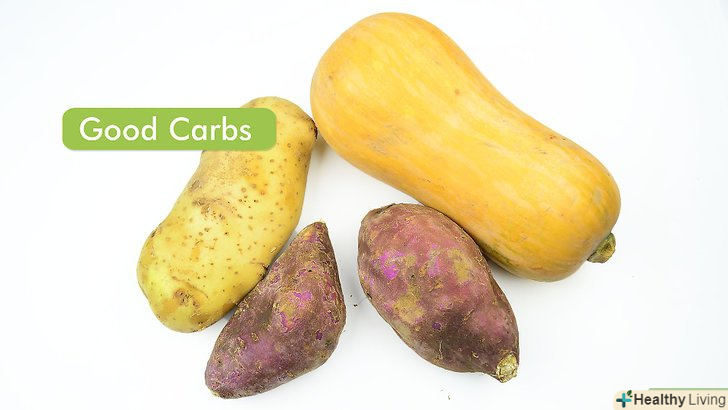 Їжте правильні вуглеводи і жири. так часто жири і вуглеводи вважаються лиходіями. Однак, існують хороші вуглеводи і хороші жири, які дуже важливі для раціону, так як дають вашому тілу енергію, підтримують метаболізм і допомагають травній системі засвоювати вітаміни. [4]- В авокадо, оливках, горіхах, оливковій олії і лососі містяться хороші ненасичені жири, і ви не повинні відчувати провину, вживаючи їх. Вони підтримають ваше почуття ситості і вбережуть від переїдання.