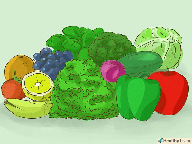Їжте достатньо фруктів і овочів. ці продукти багаті поживними речовинами – вони допоможуть вам зберегти відчуття ситості і енергію протягом усього дня. Зелені листові овочі і не крохмалисті овочі підійдуть вам найкраще; з'їдайте всього кілька фруктів в день.