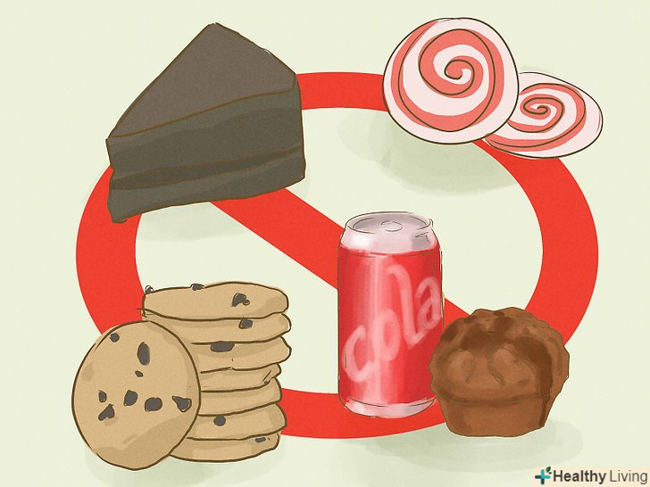 Зменшіть споживання цукру. Читайте етикетки продуктів і остерігайтеся прихованих підсолоджувачів в соусах і хлібі.- Намагайтеся уникати вживання алкоголю. Якщо п'єте-віддайте перевагу вину, а не солодким коктейлям або багатому вуглеводами пиву.