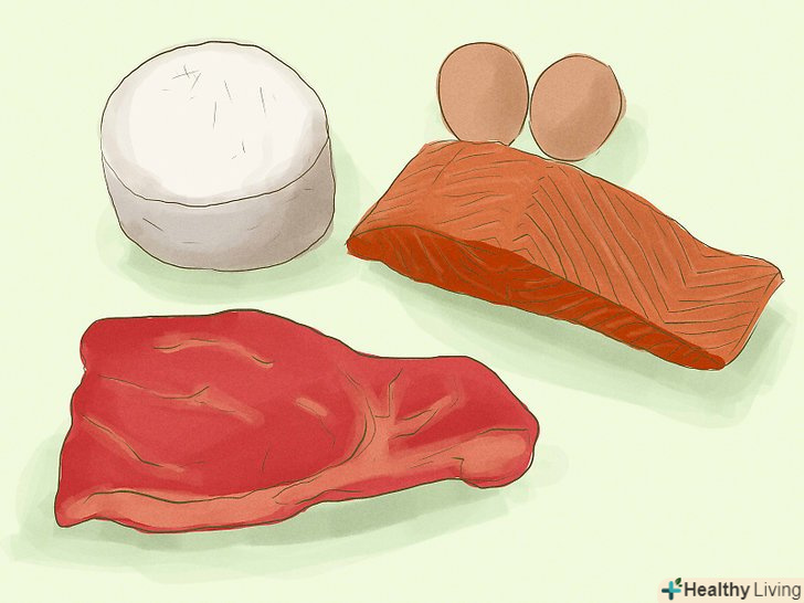 Їжте нежирну білкову їжу. індичка, курка і риба містять мало жиру, але вони багаті білками. Якщо ви вегетаріанка, спробуйте тофу, темпе, вегетаріанські гамбургери та яйця.