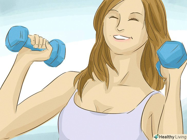 Націліться на свої руки.- Працюйте з вагою. Щоб підвищити тонус рук і не зробити їх занадто об'ємистими, піднімайте невелику вагу велику кількість разів. Для більш об'ємистих рук робіть менше повторів з великою вагою.