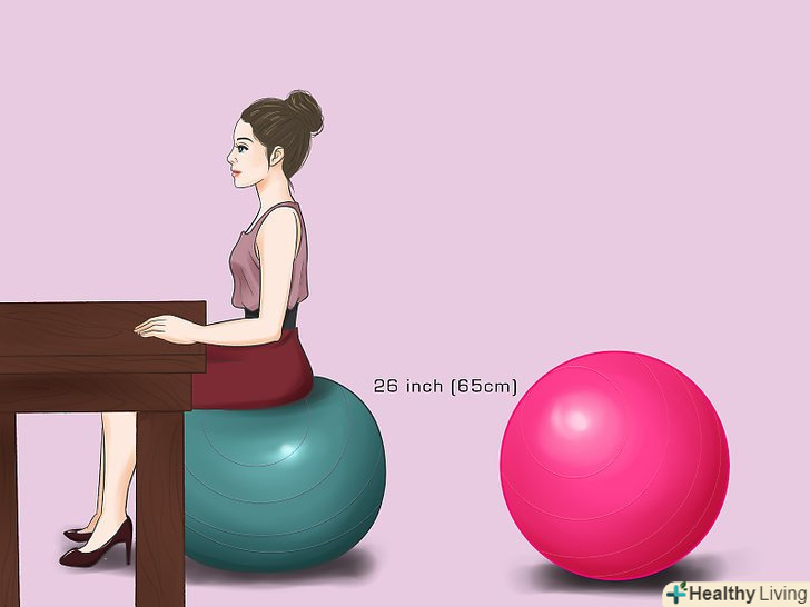 Обзаведіться м'ячем висотою в 65 сантиметрів, якщо ви будете сидіти на цьому м'ячі, як на стільці, в офісі, а висота вашого робочого столу приблизно становить 75 сантиметрів. Так як м'яч приспуститься, коли ви на нього сядете, то підберіть м'яч діаметром на 10 сантиметрів більше, ніж висота вашого стільця.