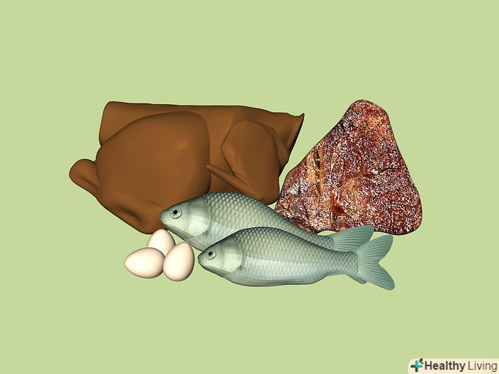 Вживайте достатньо білка. білок допомагає росту м'язів, тому під час тренувань вони повинні бути головним складовим вашого раціону. Перебудуйте свій раціон відповідним чином.- Вживайте рибу, курку, пісну яловичину, свинину та інше м'ясо, багате на білки. Яйця також є відмінним джерелом білків.