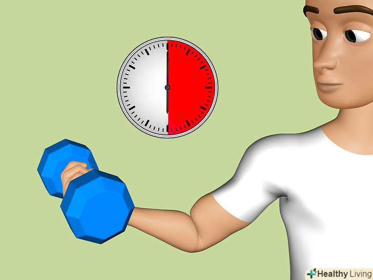 Тренуйтеся на межі можливостей. піднімайте ваги на межі і тренуйтеся інтенсивно. Бодібілдери називають це "тренуванням до відмови", тобто, піднімайте до тієї межі, коли ви вже не можете підняти жодного разу або продовжувати повне виконання вправи. У міру зміцнення ваших рук ви помітите, що колишні ваги стають для вас легше і будете їх збільшувати.- Знайдіть свою максимальну вагу, експериментуючи з різними вагами, поки не знайдете той, з яким зможете виконати не більше 10 або 12 повторень з великим зусиллям і почуттям печіння, «до відмови». Якщо ви можете виконати 10 або 12 повторень без крайніх зусиль або відчуття печіння, значить, це не ваш Максимальна вага. Якщо ви не можете виконати більше одного або двох повторень, зменшіть вагу.