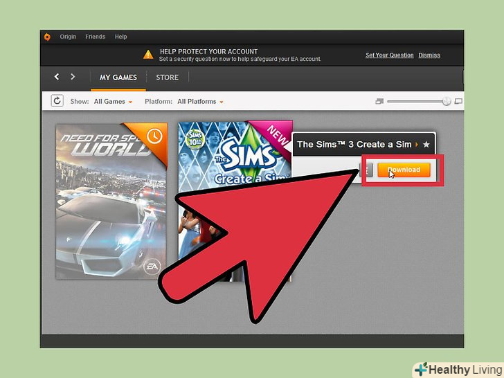 Скачайте і встановіть клієнт Origin.це програма, розроблена компанією EA і призначена для поширення цифрового контенту. Скористайтеся цим клієнтом для того, щоб купувати, завантажувати, встановлювати і грати в Sims 3 і розширення до цієї гри. Інсталяційний файл Origin можна завантажити на сайті origin.com/download . Origin підтримує як Windows, так і Mac OS.