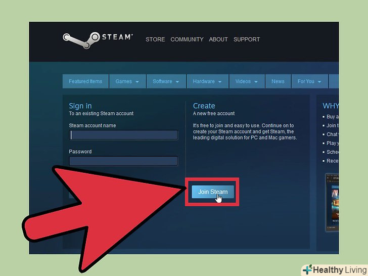 Створіть безкоштовний обліковий запис Steam.вона необхідна для входу в клієнт Steam. Створити аккаунт можна при першому запуску клієнта Steam.