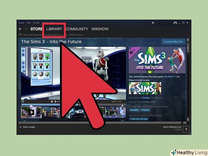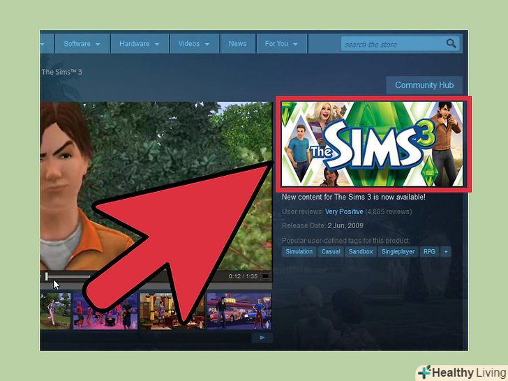 Купуйте гру Sims 3.для того щоб встановити Sims 3 через Steam, потрібно купити гру в магазині Steam, або купити (в якомусь онлайн-магазині) спеціальний ключ, випущений сервісом Steam. Щоб купити гру, в рядку пошуку на сторінці магазину Steam введіть «The Sims 3» (без лапок), а потім клацніть по назві гри в результатах пошуку. Щоб оплатити покупку, знадобиться рахунок PayPal або дійсна банківська карта.- Якщо ви купили ключ, випущений сервісом Steam, натисніть "Додати гру" (в нижньому лівому кутку сторінки сервісу Steam). Виберіть "Активувати продукт" і введіть куплений ключ. Так ви зможете додати Sims 3 в колекцію ігор на сервісі Steam.