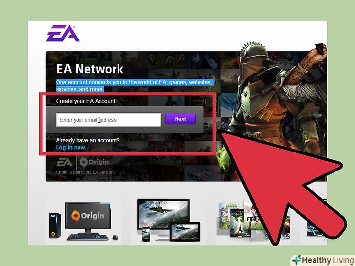 Створіть обліковий запис Origin.вона необхідна для роботи з клієнтом. Якщо у вас є аккаунт EA, скористайтеся ним для входу в Origin; в іншому випадку створіть аккаунт при першому запуску клієнта Origin.